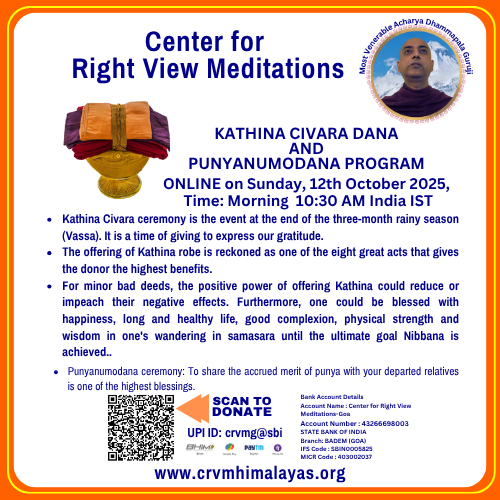 Introductory Session on learning Mindfulness and Right View Meditations for Mind Purification & Kathina Cīvara Dāna Ceremony